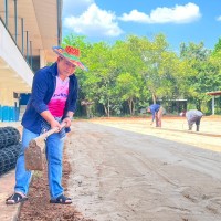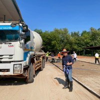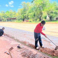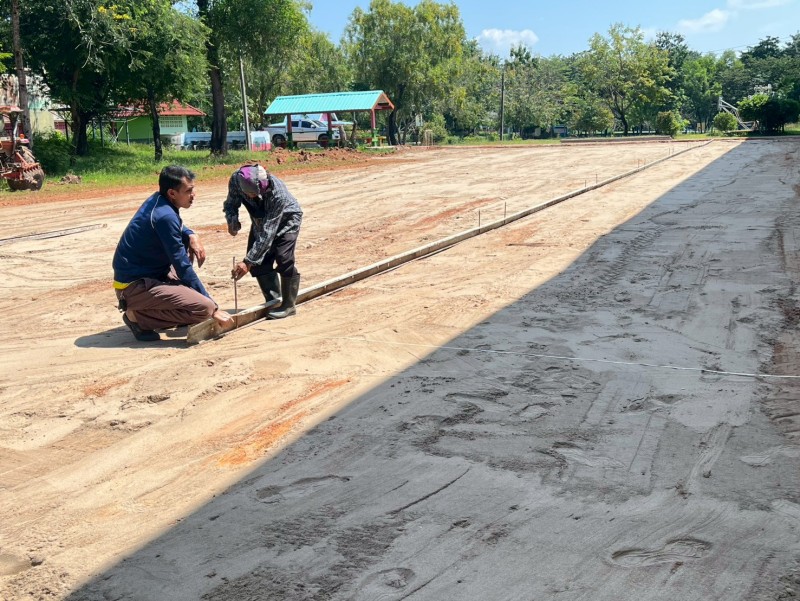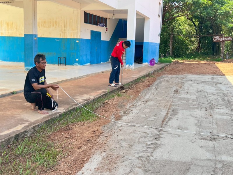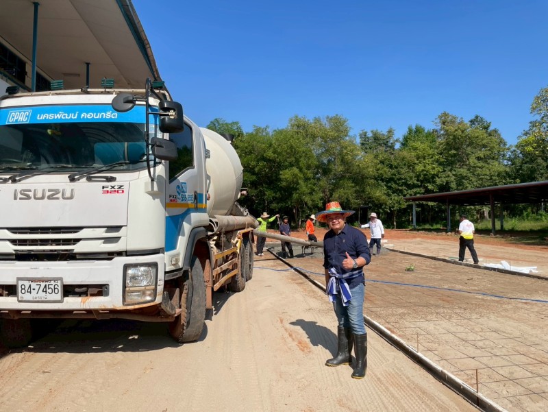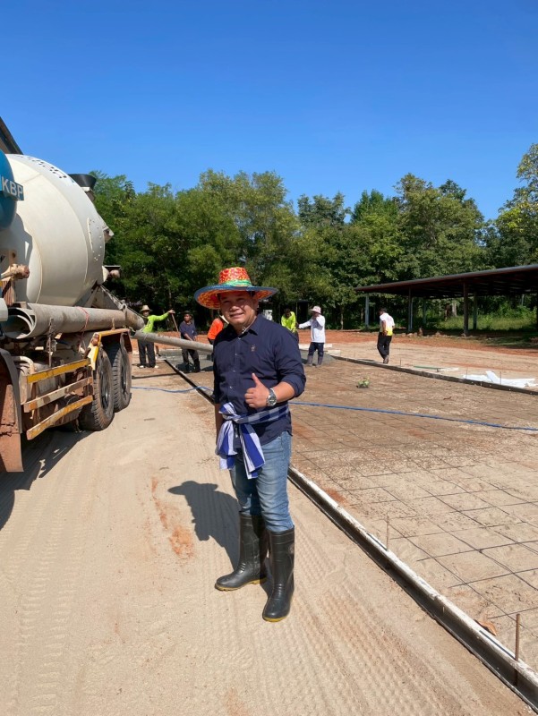 การระดมทุนเทพื้นคอนกรีตหน้าอาคาร 4