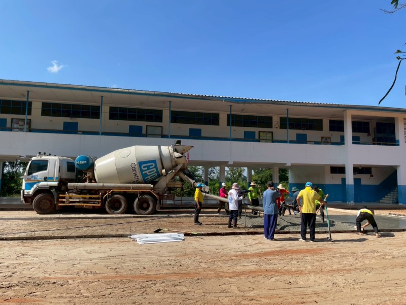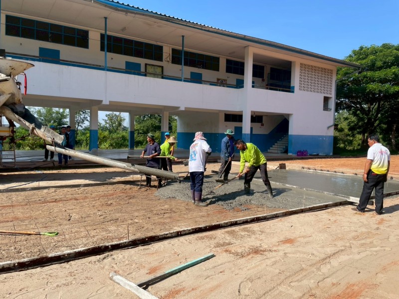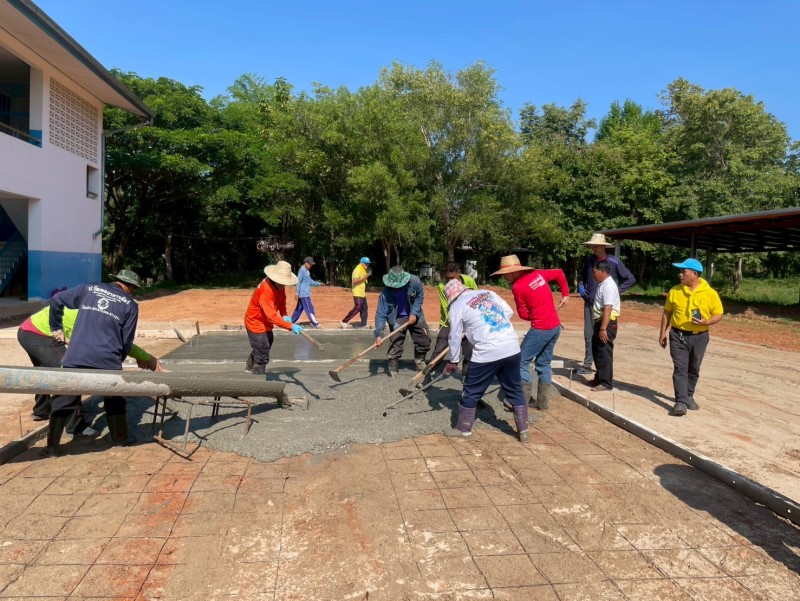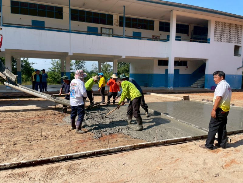 การระดมทุนเทพื้นคอนกรีตหน้าอาคาร 4