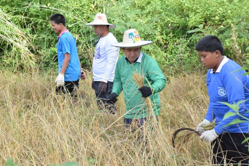 เมื่อวันที่ 10 พฤศจิกายน 2568 นายนาฎธิชัย ศรีทัด ผู้อำนวยการโรงเรียนบ้านโคกกลาง นำคณะครูและนักเรียนชั้นมัธยมศึกษาปีที่ 1-3 จัดกิจกรรมลงแขกเกี่ยวข้าว ณ โรงเรียนบ้านโคกกลาง เพื่อจัดการเรียนรู้แบบบูรณาการและเพิ่มทักษะชีวิตให้กับยนักเรียน |